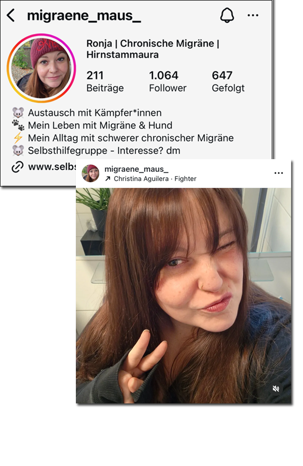 Ronja teilt auf @migraene_maus_ ihr Leben mit hochfrequenter chronischer Migräne und Hirnstammaura.